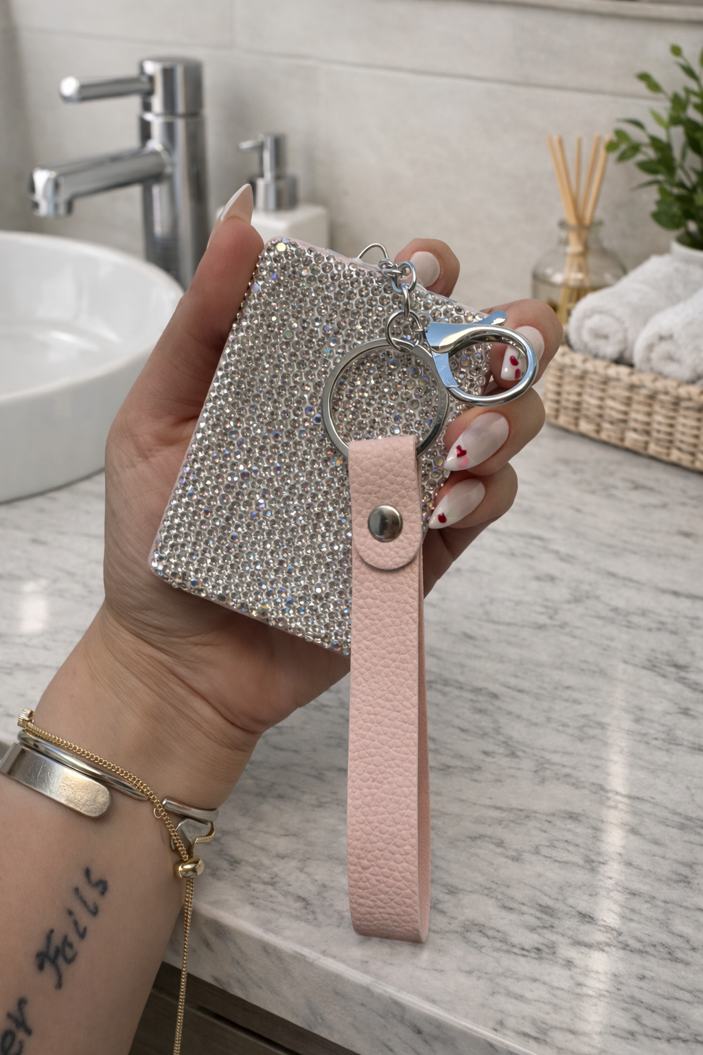 Rosa con Strass plateados
